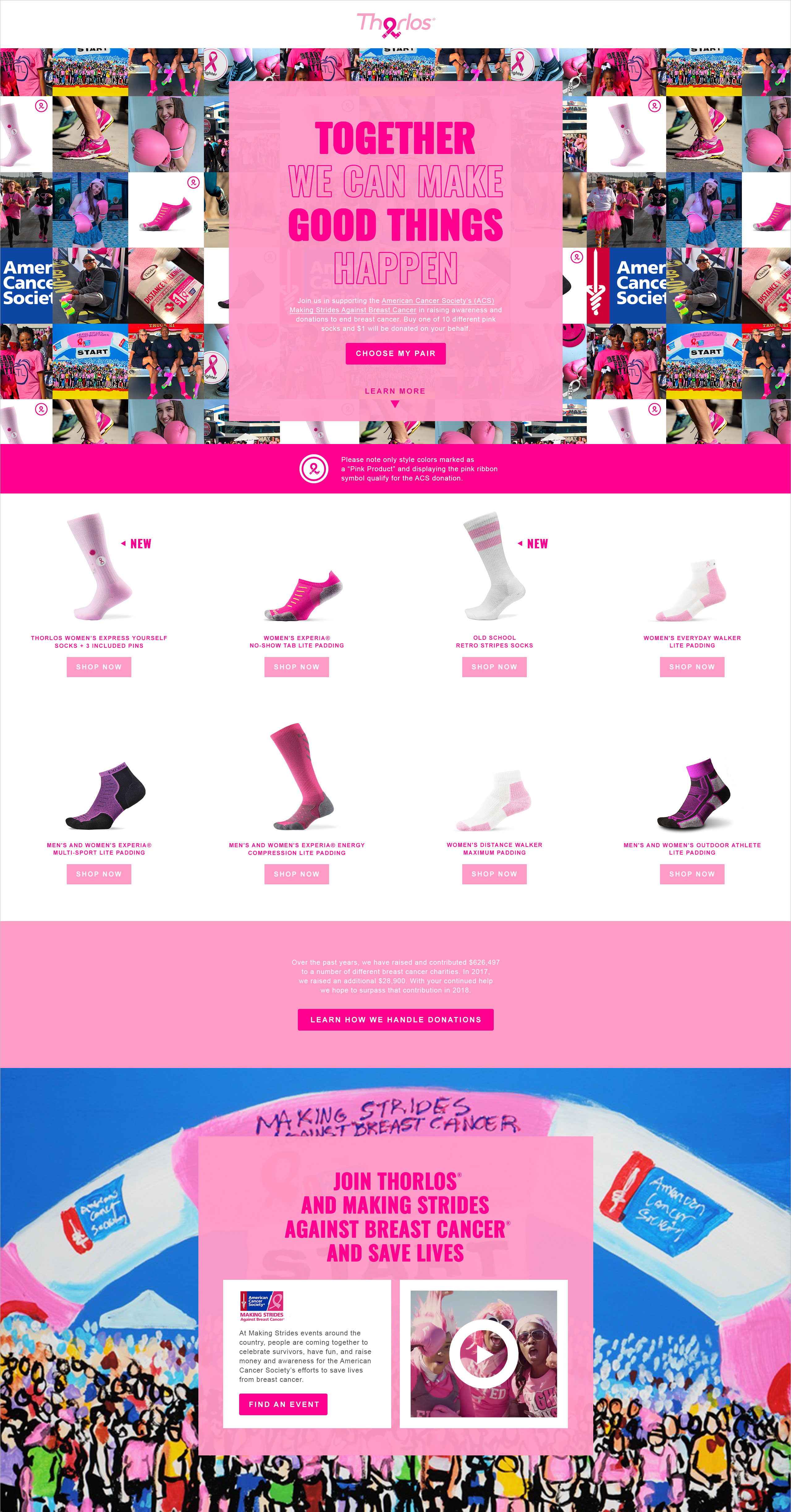 Thorlos has been an active partner with American Cancer Society's Making Strides Against Breast Cancer.